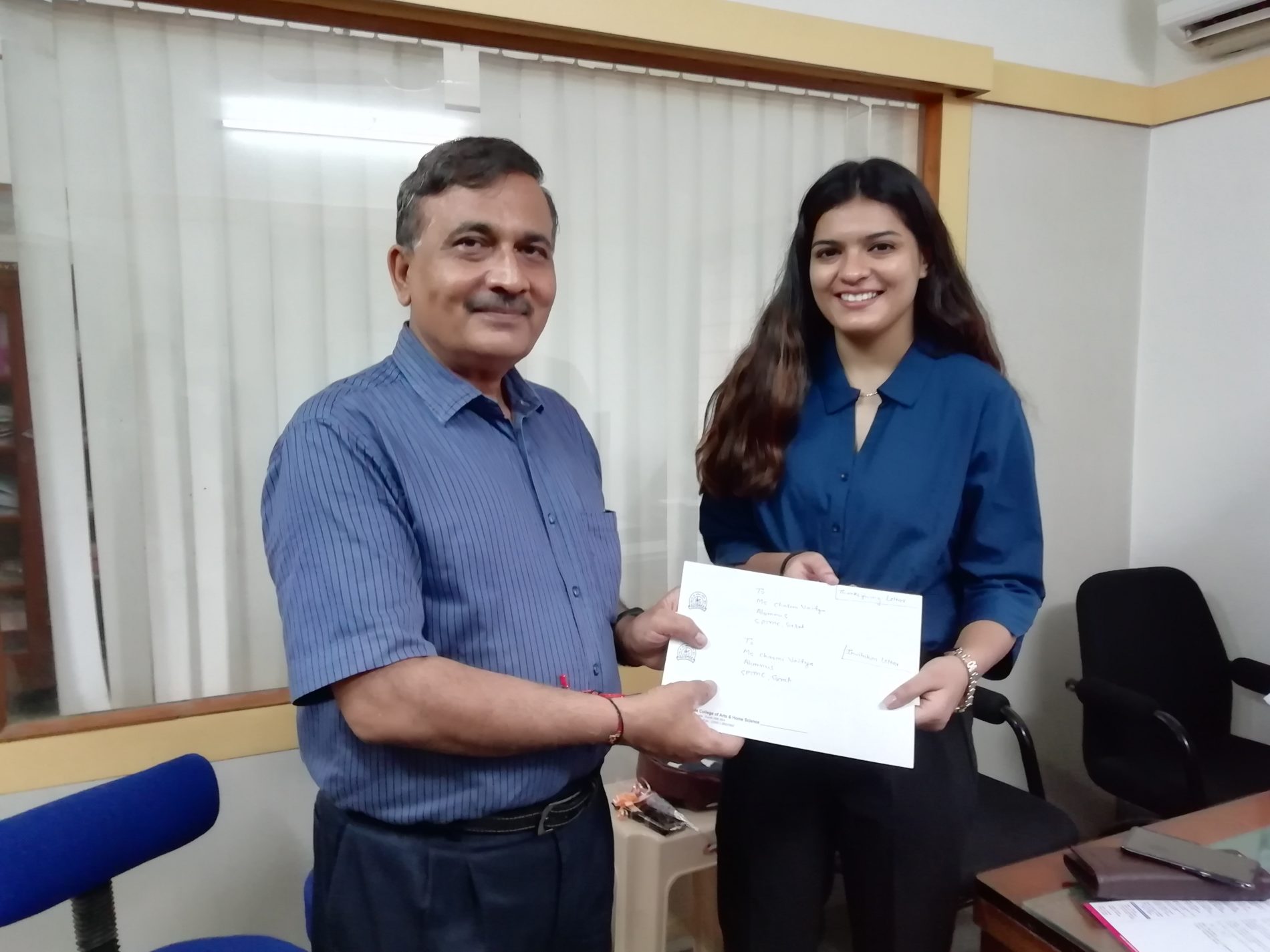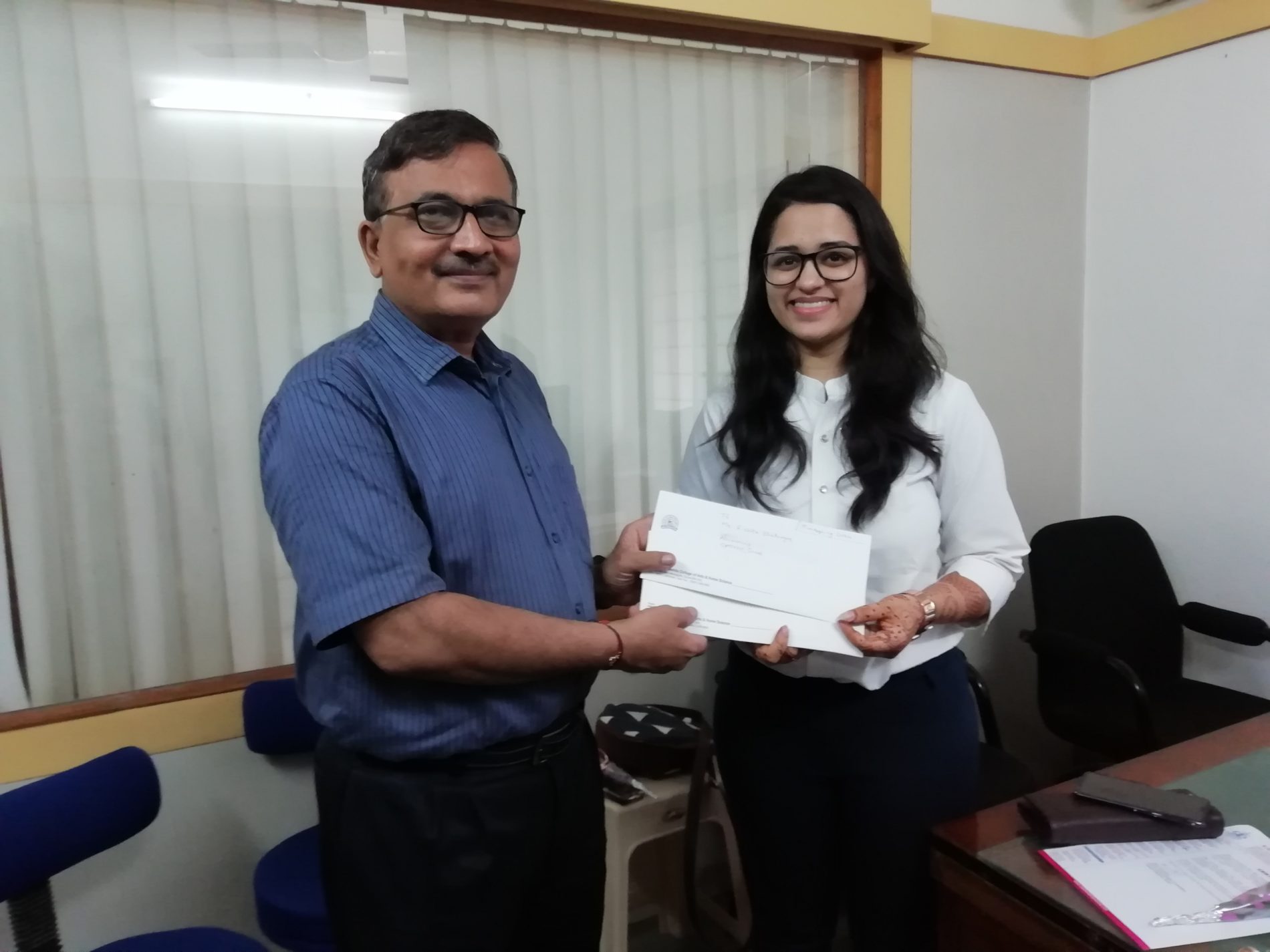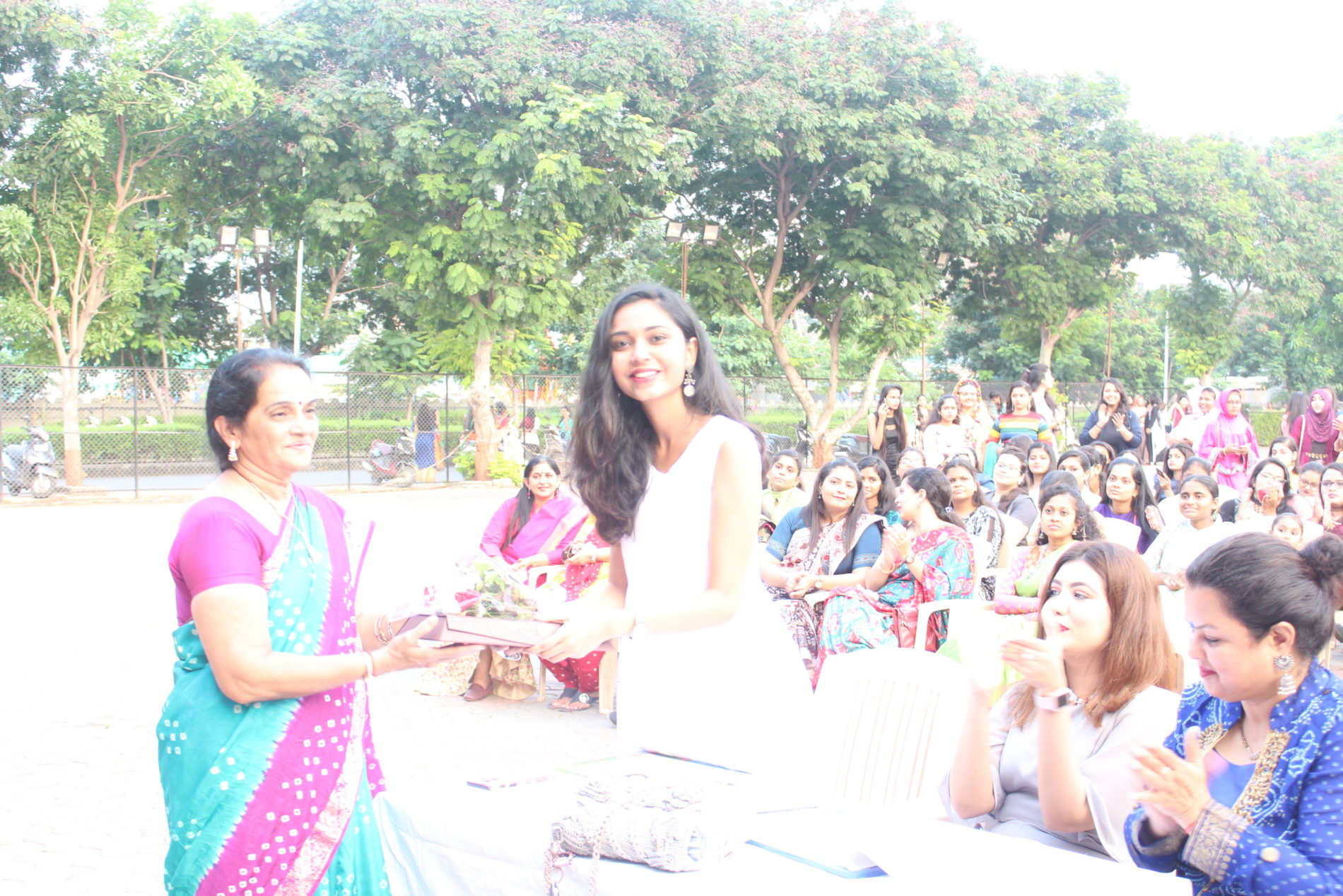 Our Proud Alumnus Mitsu Chavda Receiving an Award from the Honourable HRD Minister Shrimati Smriti Irani for her her mission “Ride for Soldiers”