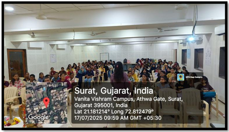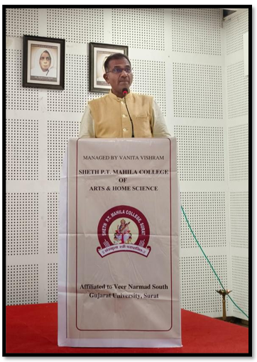 The session began with a prayer and lamp lighting ceremony, symbolizing knowledge and wisdom. Dr. Smita Bhatt extended a warm welcome to all guests and students. The introduction of the guest speaker was given by Prof. V. L. Patel, HOD of Gujarati Department.